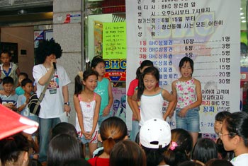 소점포들도 대기업과 같은 기업이미지 제고를 위해 각종 이벤트를 열고 있다. 퓨전치킨전문점 BHC가 개최한 어린이 댄스경연대회에서 어린이 고객들이 열심히 춤을 추고 있다. 사진제공 한국창업개발연구원 소자본 개인사업자들 사이에 ‘이벤트 열풍’이 뜨겁게 불고 있다.